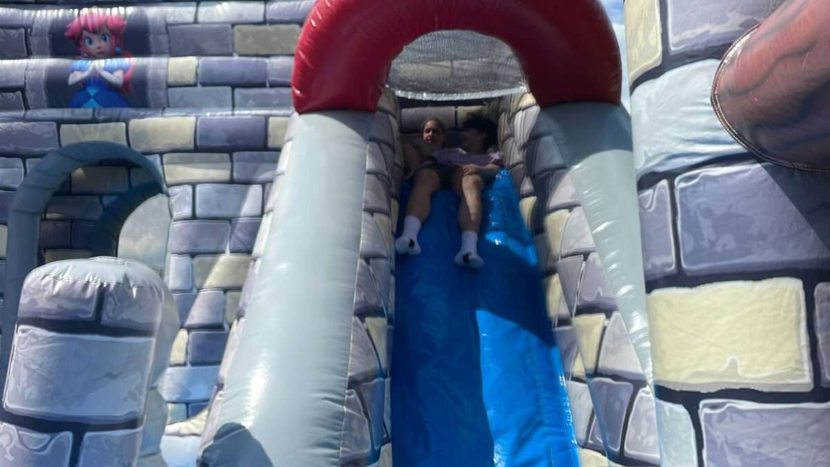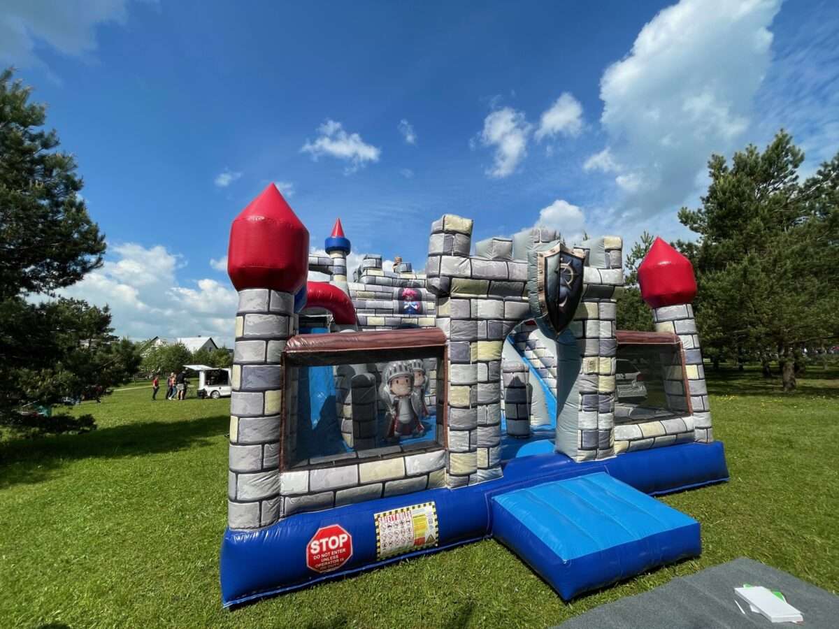 Didelis pripučiamas pilies batutas su dviem čiuožyklom ir kliūtimis bei erdve žaidimams. Tinka vaikams nuo 3 iki 15 metų. Pristatome ir pastatome Vilniuje ir aplinkiniuose rajonuose.
